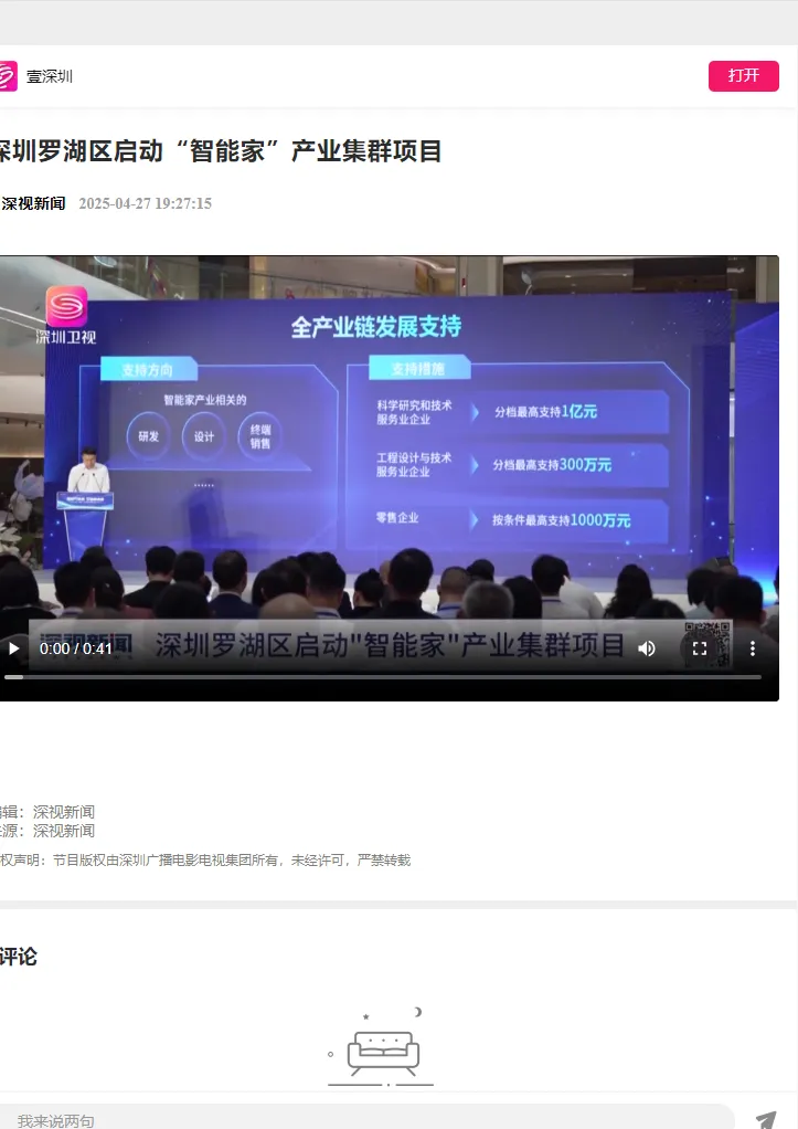 大会从空间赋能、资本赋能、服务赋能、场景赋能、政策赋能等5个方面,推介罗湖“智能家”招商体系,同时发布《罗湖区支持“智能家”产业集聚发展若干措施》,现场100余家协会、企业代表参会。
