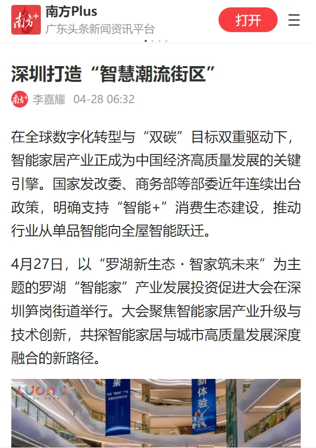 中建深装助力打造的笋岗“家文化”消费街区,串联周边6大商圈形成全长3公里的“罗湖云街”,让社区、商业、产业真正互联互通,既为市民休闲娱乐提供了好去处,也为产业发展注入了新动能。未来将继续携手,共同建设“智慧潮流街区”,打造深圳智能家产业示范街区。